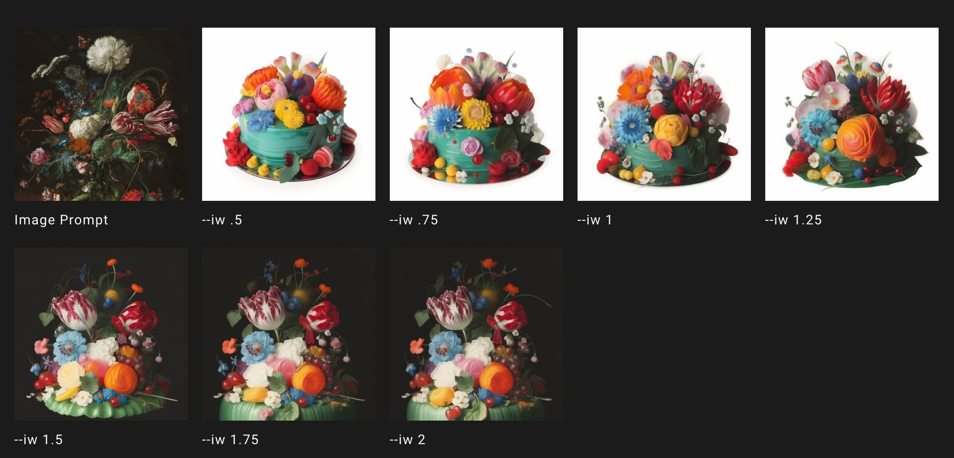 当你同时用 img prompt 和文字 prompt 的时候,就可以通过这个参数设置到底更像图片还是更像文字,当这个参数越大,AI 生成的图片就越像原图,越小,就越像文字描述。