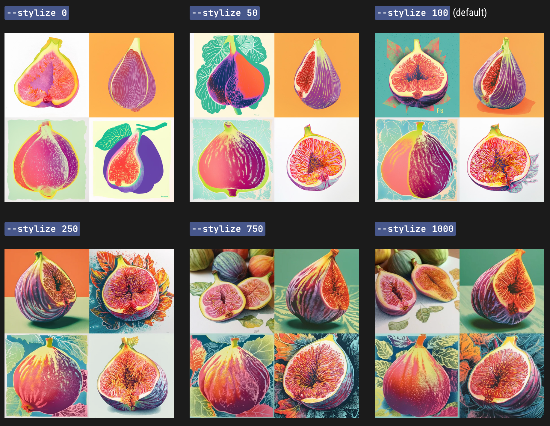 这个参数跟 ChatGPT 里的 Temperature 有点像,主要是控制生成图片的风格化程度。简单理解,这个值越低会更符合 prompt 的描述,数值越高艺术性就会越强,但跟 prompt 关联性就会比较弱。