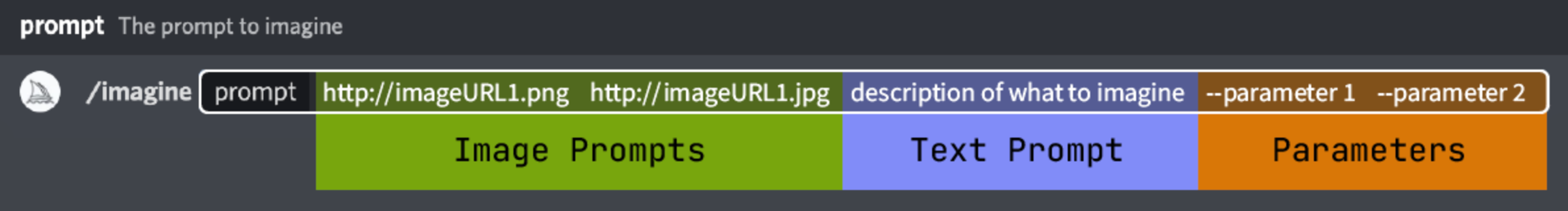 在 Midjourney 的官方介绍文档里,介绍了最简单的 Prompt 结构是这样的: