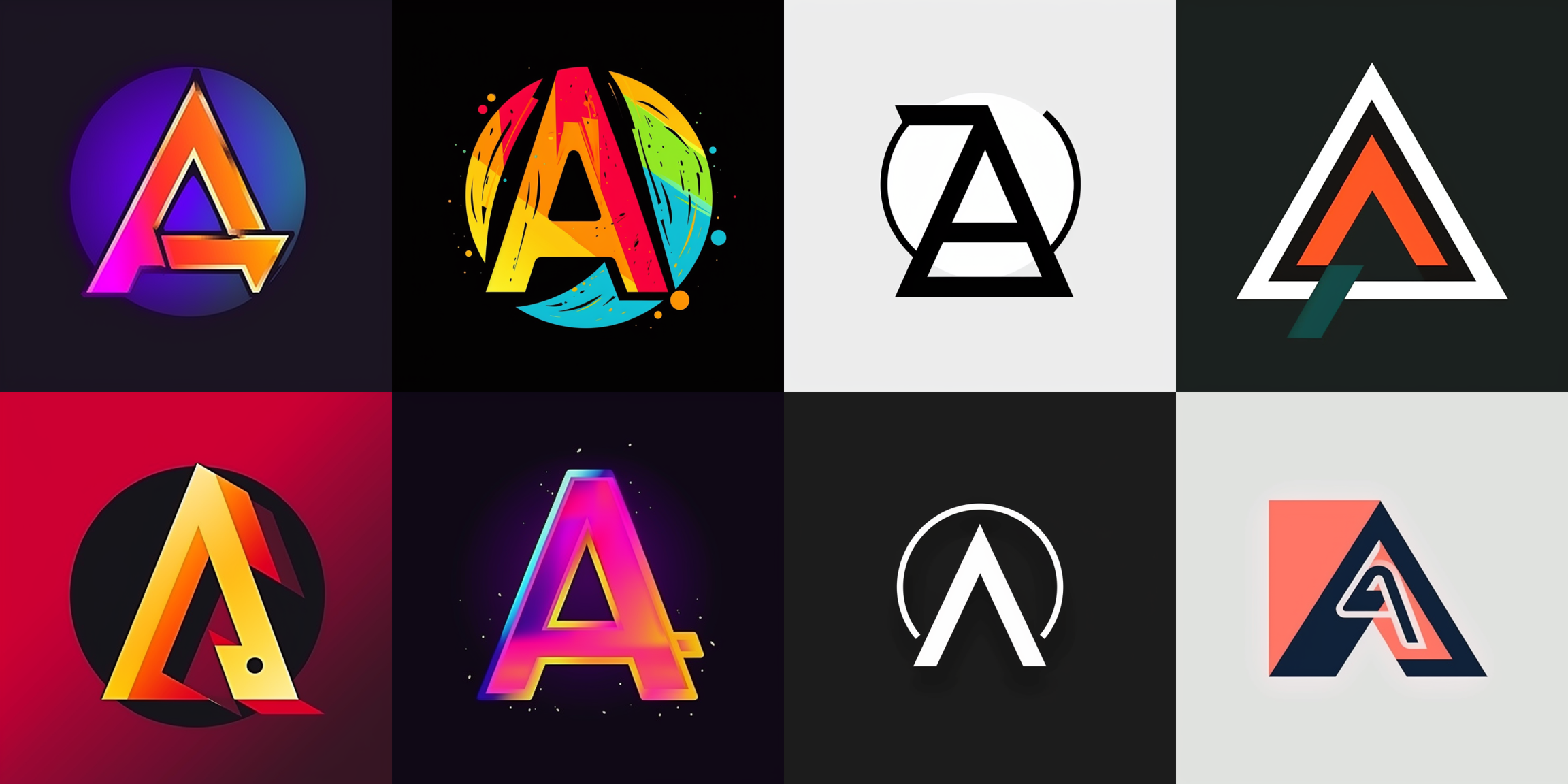 这个根据我的实验,也试用了很多人写的 prompt,我个人的感受是,这种类型的 Logo 看起来简单,就一个字母进行变形,但让 AI 生成反而效果很一般,而且有一个算是比较有意思的发现,用 A 字母做出来的 Logo 质量比其他字母做出来的 Logo 质量要好很多(非严格按照数据统计,仅个人感受)。这个类型的 Logo 有以下特点: