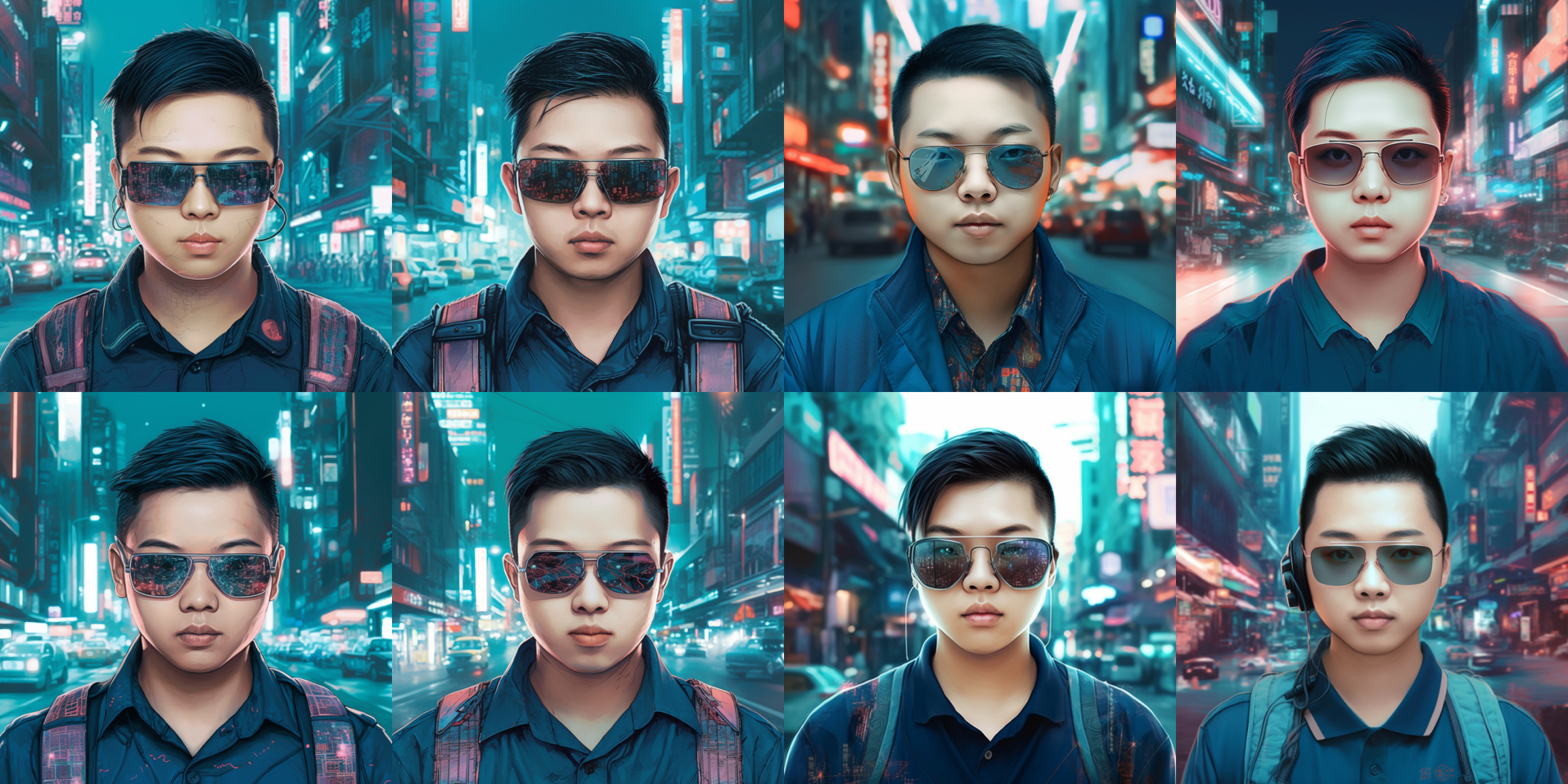 上面这几个头像 prompt 最后生成的头像是这样的,坦率地说,我已经尽力了,我的个人特征太少了,人也不帅,生成的图片,都有种东南亚人那味,感觉 Midjourney 对亚洲人的理解还不是很行 😂